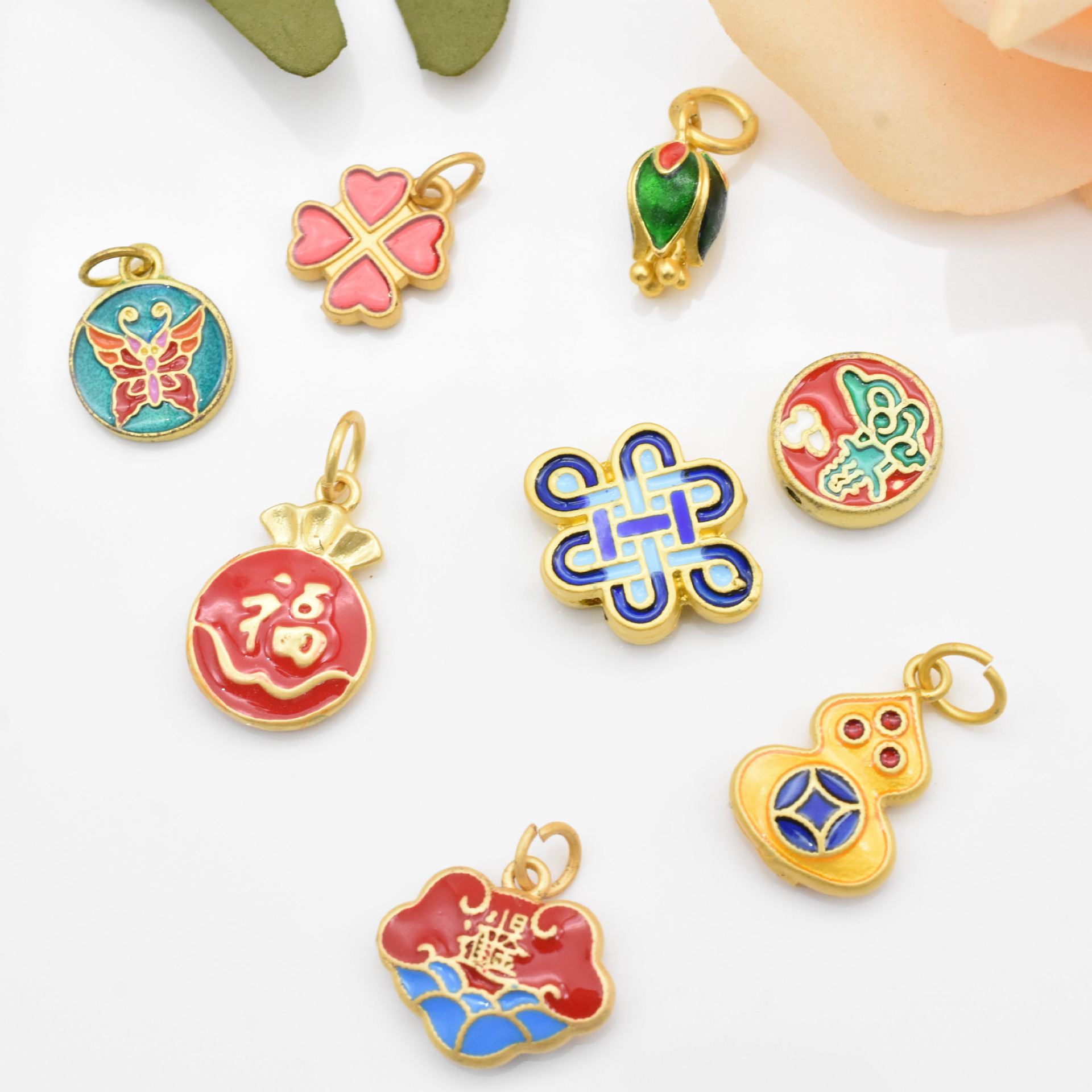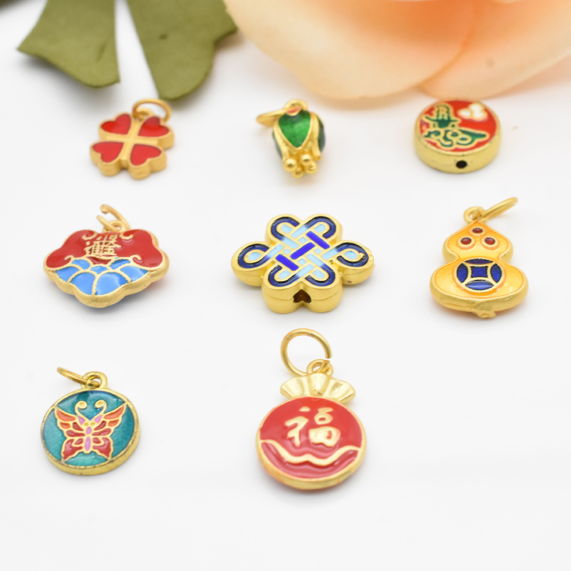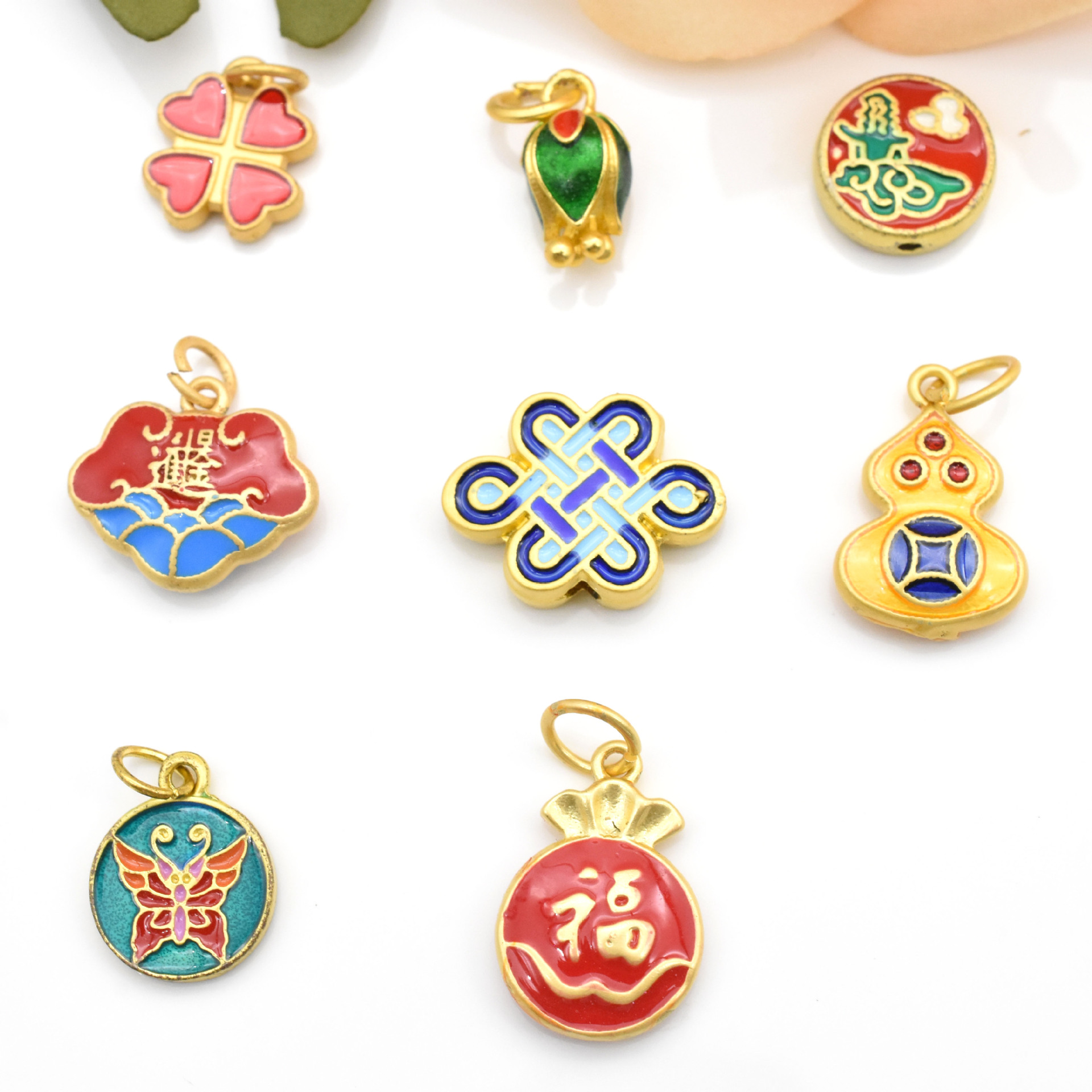 Gufa Sargent Gold Pendant Gourd Butterfly Lotus Four-Leaf Clover Bracelet Beaded Diy Hand String Necklace Accessories