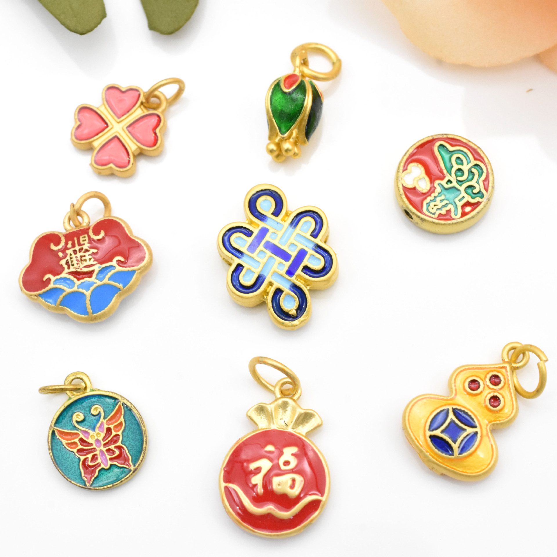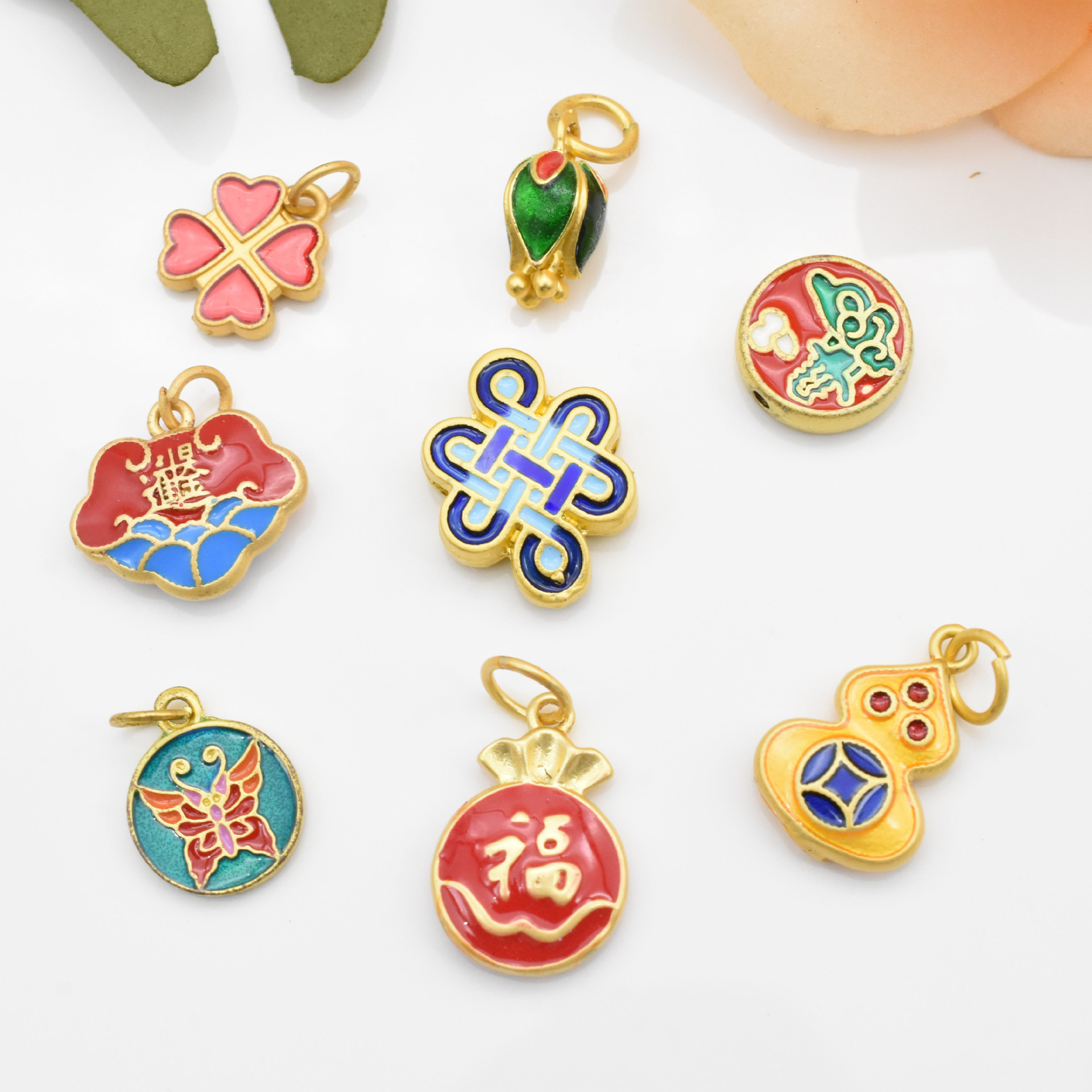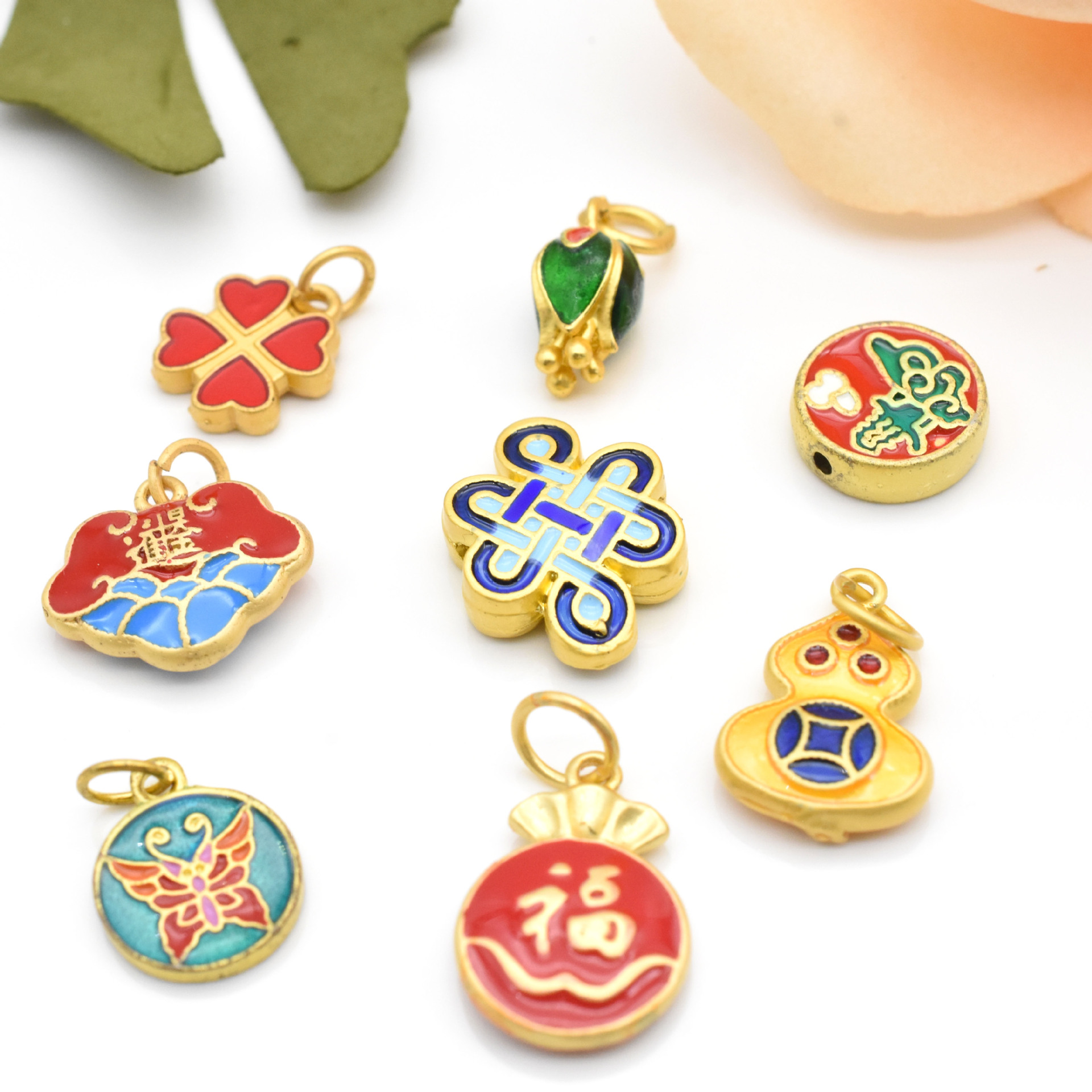 Gufa Sargent Gold Pendant Gourd Butterfly Lotus Four-Leaf Clover Bracelet Beaded Diy Hand String Necklace Accessories